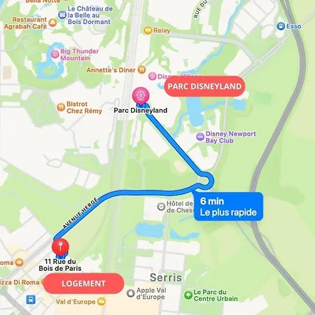 Le Parc Disneyland est situé à à côté de l'appartement. Le centre de Chessy est à 3 km de la résidence. Le château de la Belle au Bois Dormant est à seulement 1,1 km.